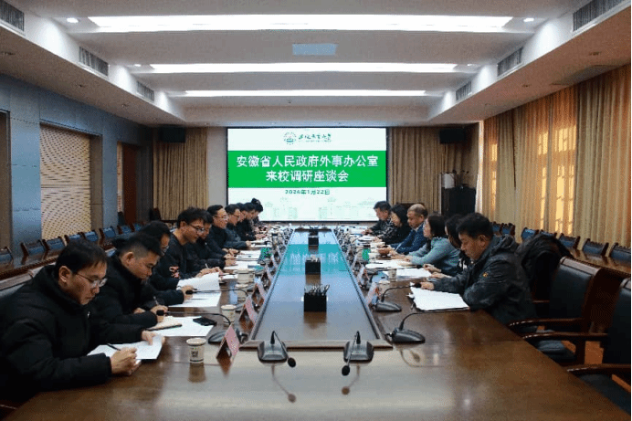 本网讯 1月22日,安徽省人民政府外事办公室党组成员、副主任彭传武一行来校,就农业对外开放工作开展专题调研。省外事办经济服务处、友好城市处,省农业农村厅对外合作处相关负责人陪同调研。校党委副书记、校长操海群出席座谈会。党委常委、副校长陈黎卿主持座谈会。操海群详细介绍了学校在农业对外开放方面的工作举措与显著成效。他指出,学校始终围绕服务国家战略和区域发展核心导向,主动响应国家“一带一路”倡议,持续深化与共建“...