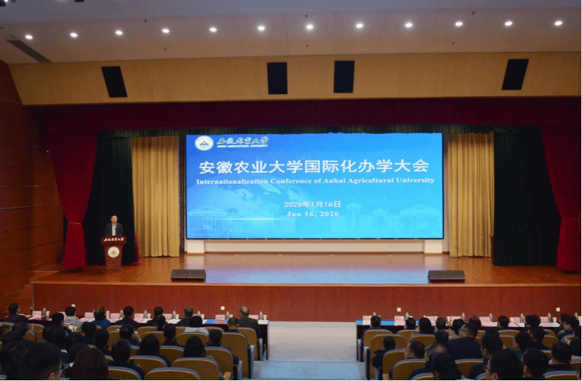 本网讯 1月16日上午,学校国际化办学大会在图书馆第一报告厅召开。安徽省外事办副主任彭传武、省科技厅副厅长谭海斌、省教育厅外事处处长姚德勇,校领导张庆亮、操海群、董雨、李红、吴祥为、陈黎卿、程道传、江海洋、吴文革出席大会。会议指出,国际化办学是服务国家战略的必然要求,是融入“皖之要事”的现实需要,更是学校争创一流农业大学的必由之路。当前学校正处于冲刺“双一流”、谋划“十五五”的关键节点,要在办学格局上求突破,...