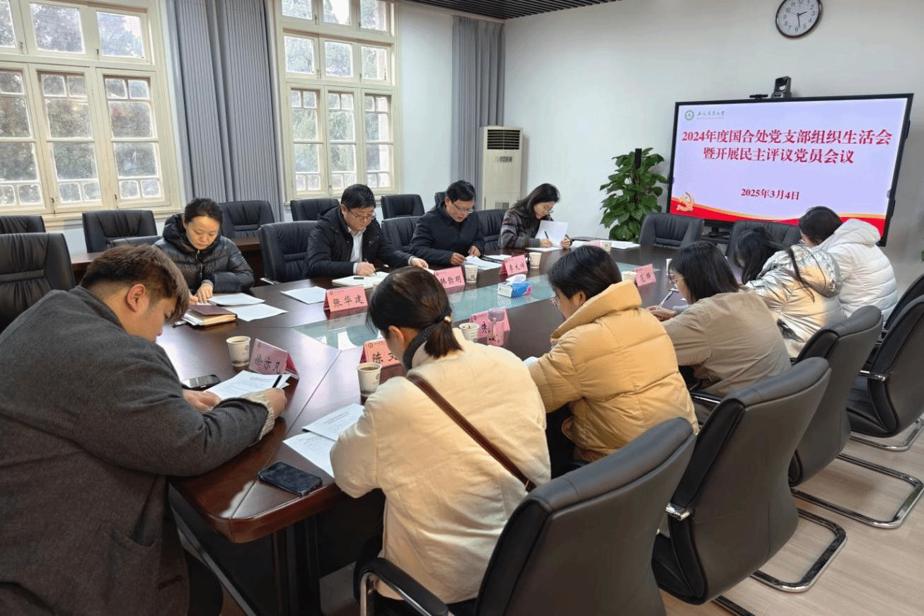 3月4日下午,国合处2024年度处级领导干部民主生活会暨党支部组织生活会召开。机关党委委员、组织部部长韩弥明到会指导。党支部书记李大祥主持会议。