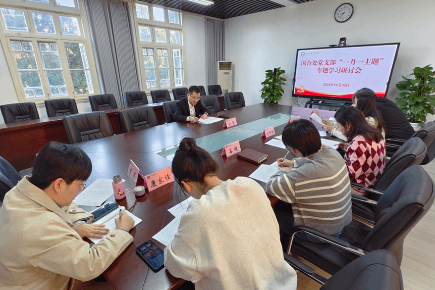 10月30日上午,国合处党支部召开了“一月一主题”学习会议,专题学习习近平总书记在安徽考察时的重要讲话精神。会议由支部书记孙裴同志主持。