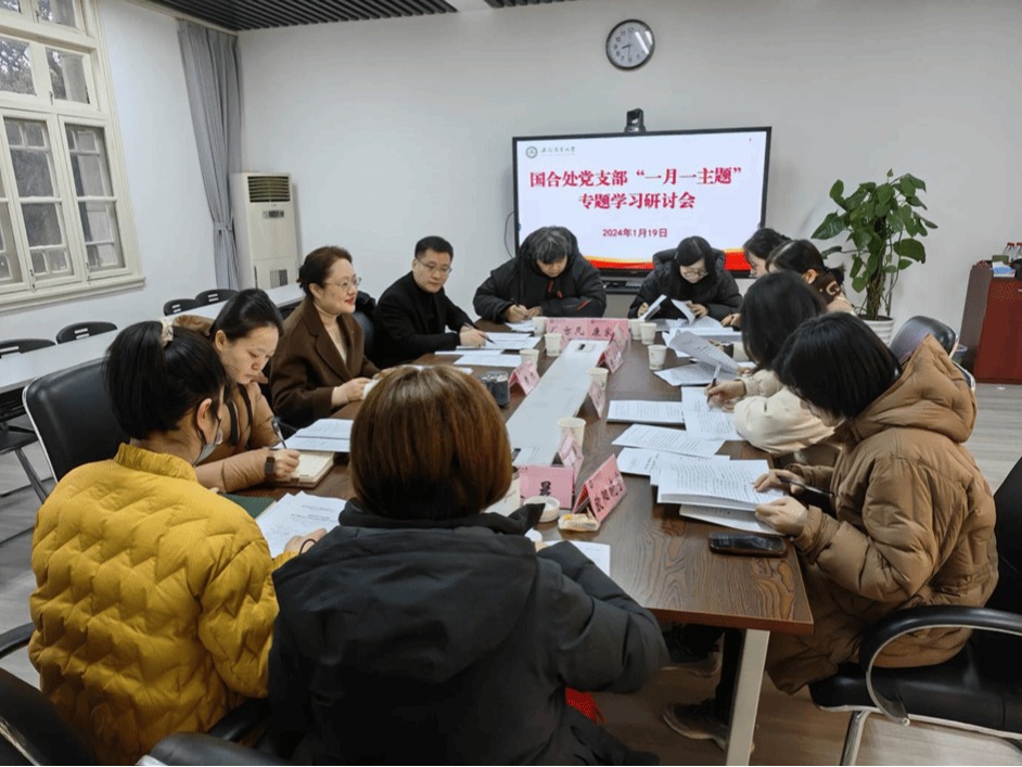 1月19日,国合处党支部开展“一月一主题”专题学习研讨会。校党委常委、副校长李红同志以普通党员身份参加所在党支部组织生活。会议由支部书记孙裴同志主持。