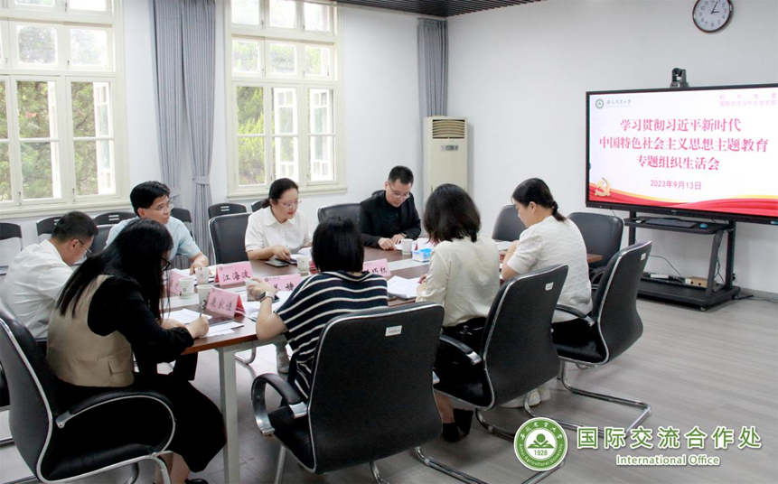 9日13日,国合处党支部召开2023年度学习贯彻习近平新时代中国特色社会主义思想主题教育专题组织生活会。校党委常委、副校长李红以普通党员身份参加组织生活会,机关党委委员、总务部部长江海波等同志到会联系指导,会议由党支部书记孙裴主持。