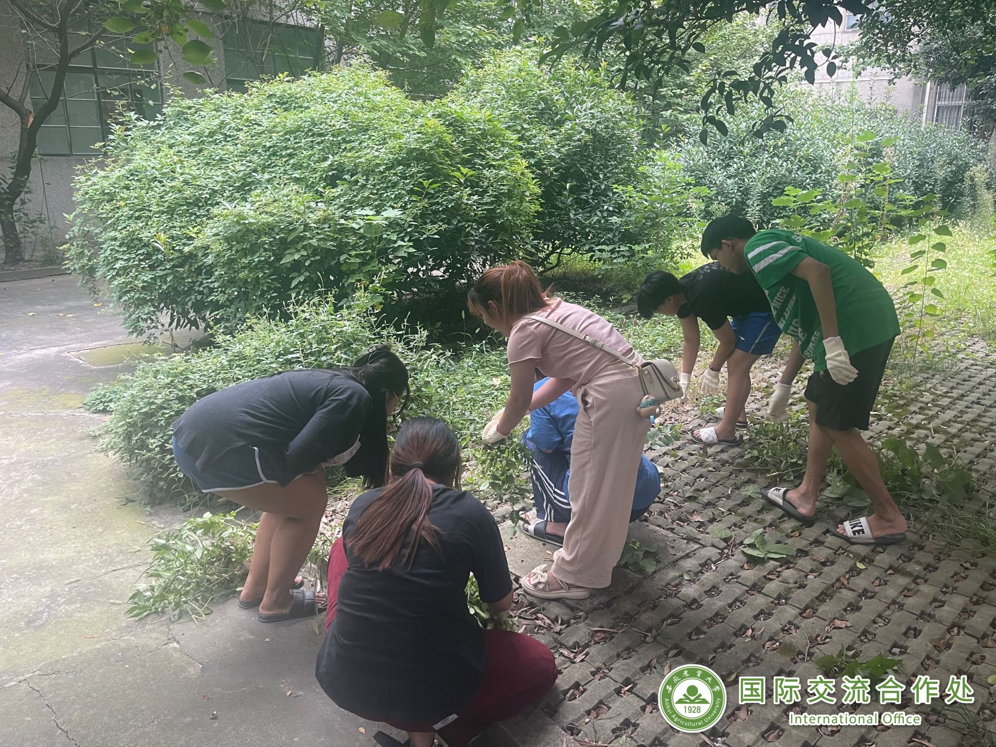 会后,国合处党支部开展新学期环境卫生责任区清扫主题党日活动。(刘巧红)