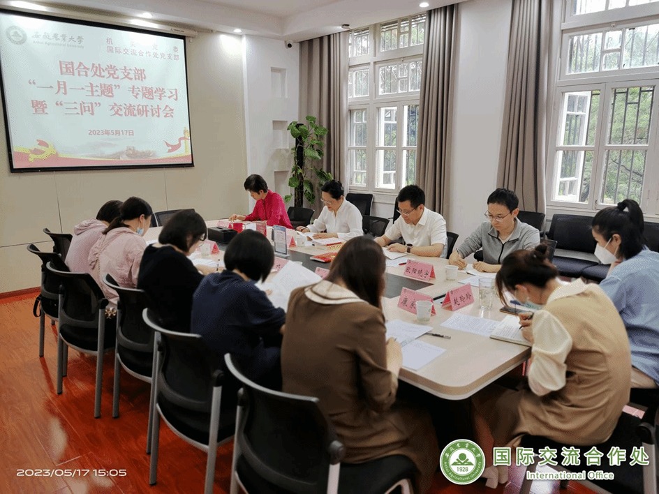 5月17日,国合处党支部开展“一月一主题”专题学习暨“三问”交流研讨会。校党委常委、副校长李红同志以普通党员身份参加所在党支部组织生活。会议由支部书记孙裴同志主持。