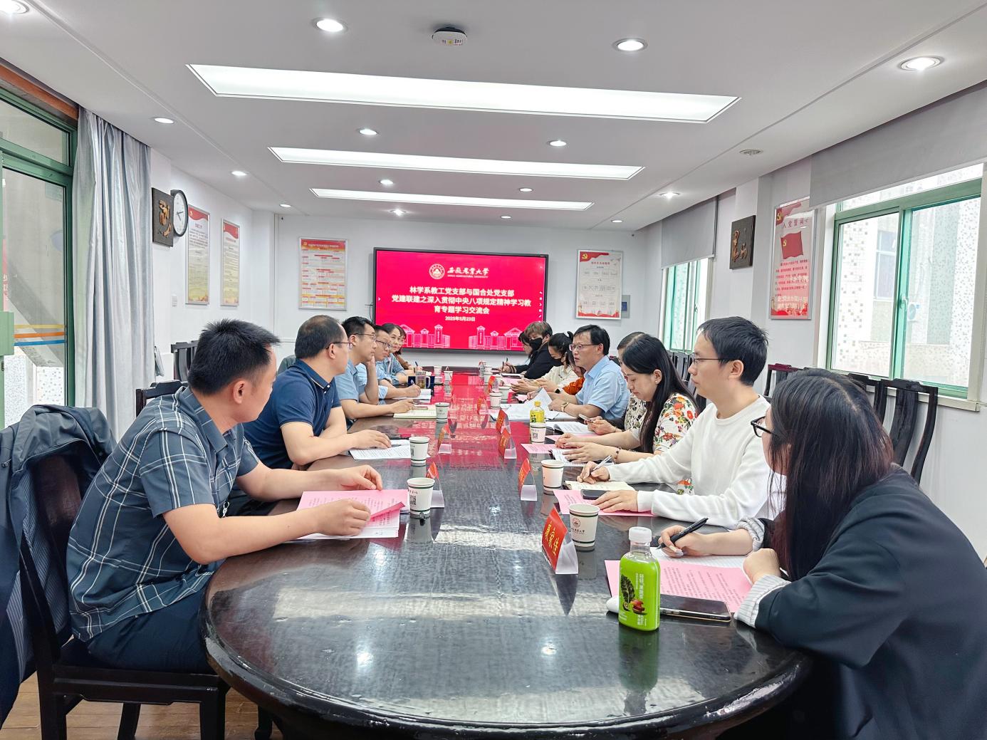 会上,双方围绕中央八项规定精神深入学习《习近平关于加强党的作风建设论述摘编》。党员们逐字研读,深刻认识到作风建设的重要性,纪律与规矩意识得到进一步强化。林学系教工党支部详细介绍了支部建设情况,分享了党建工作的特色做法与宝贵经验。同时,介绍了“强国行”专项行动团队建设情况,展现出团队在科研、实践等方面的积极成果。此外,双方还就学校中外合作办学项目教育部评估进展,共同规划下一步工作。座谈交流环节,与会党员踊跃发言,围绕党建与业务融合、国际化人才培养等话题展开讨论。