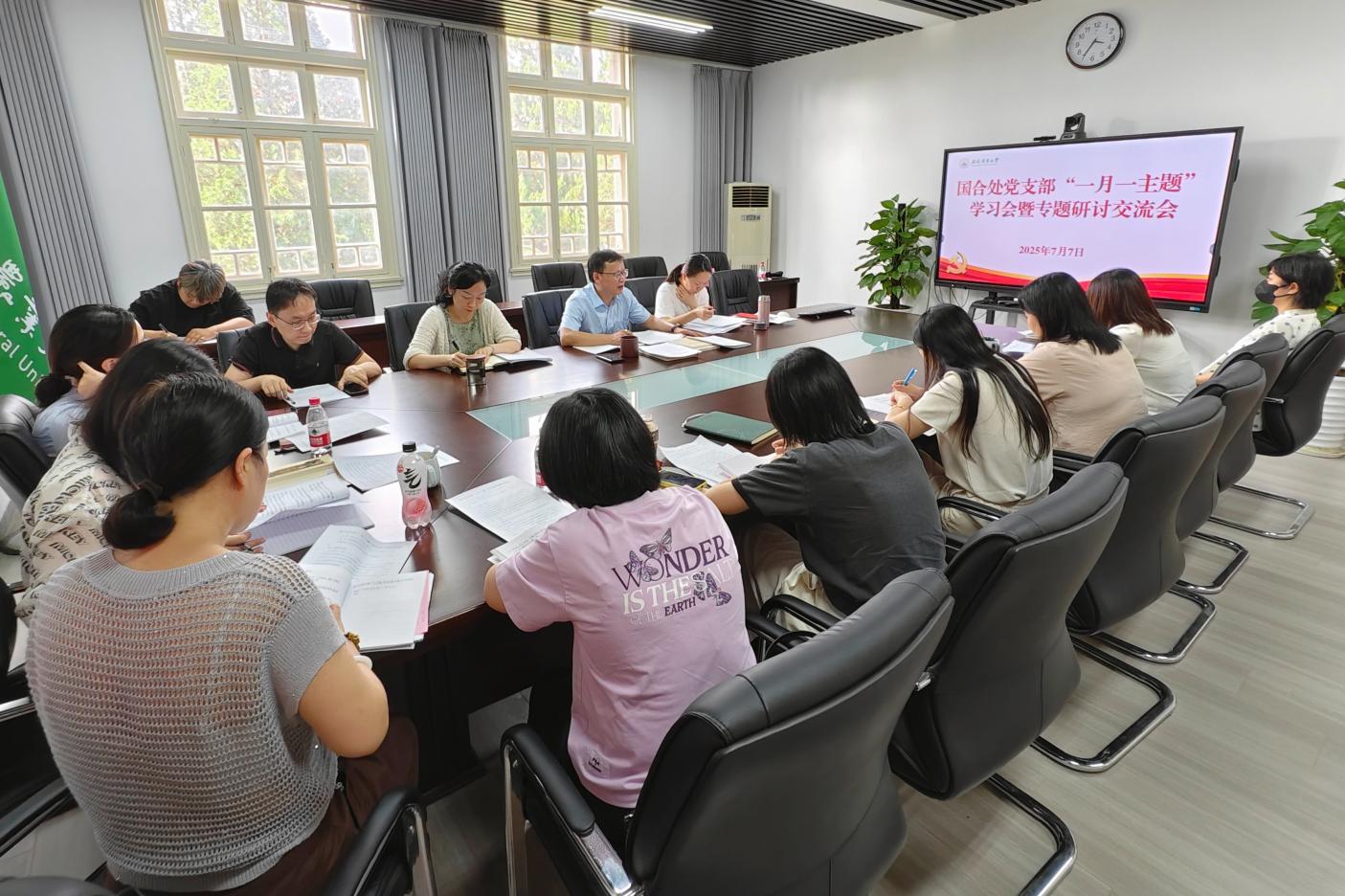 7月7日下午,国合处党支部开展“一月一主题”学习会暨专题研讨交流会,会议由支部书记李大祥主持,全体党员参加会议。