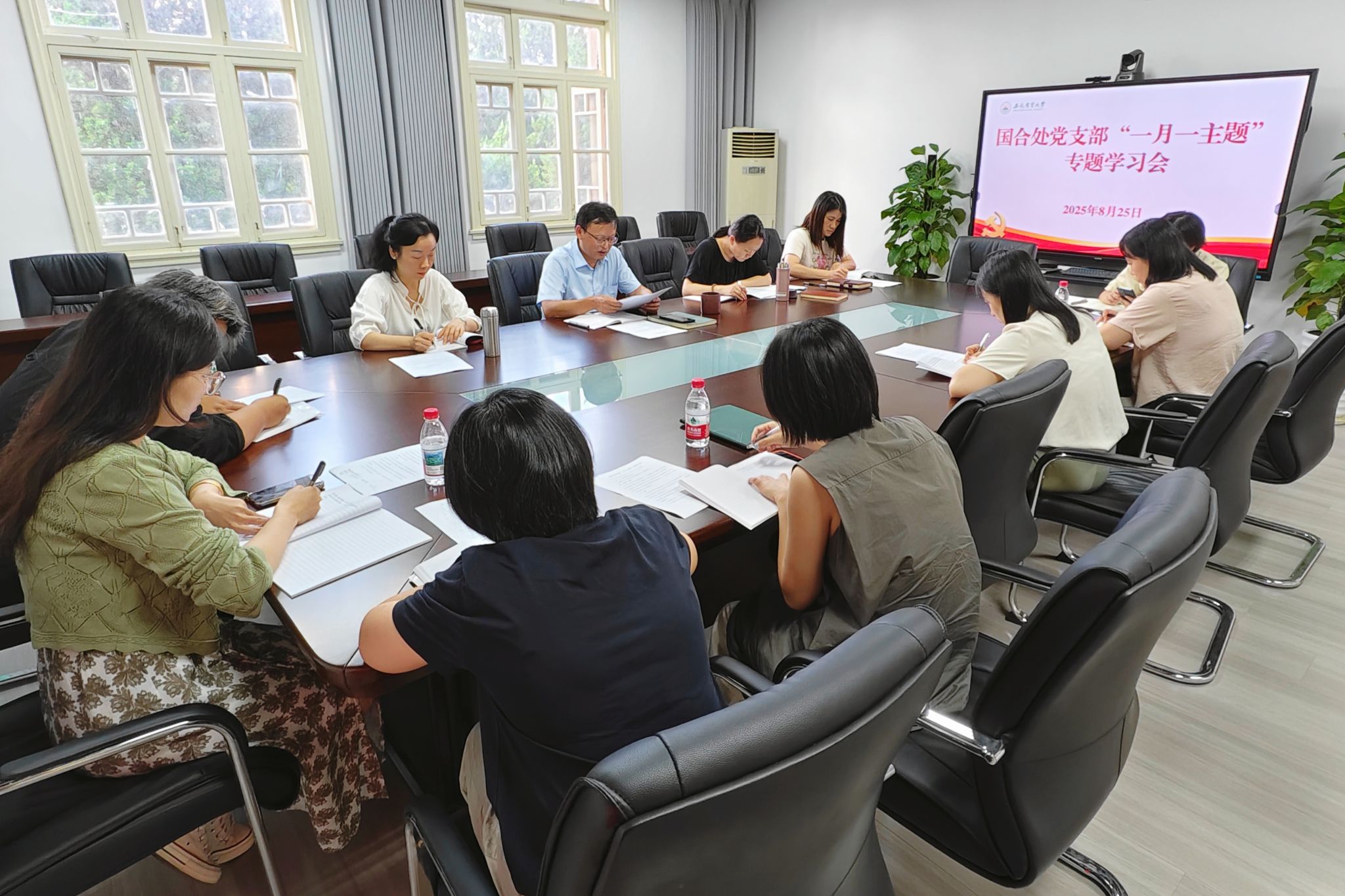 8月26日下午,国合处党支部召开“一月一主题”专题学习会。会议由党支部书记李大祥主持,全体党员和入党积极分子参加会议。