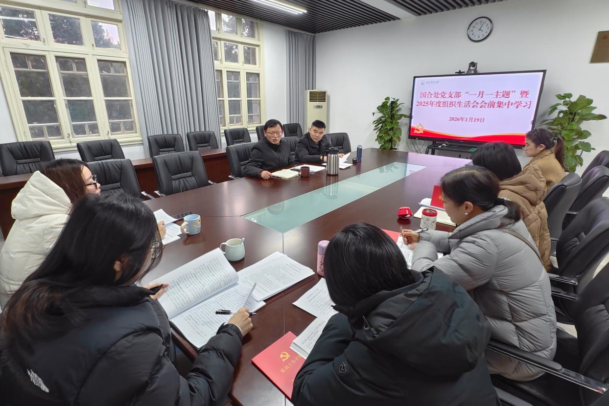 会议重点学习了《国家主席习近平发表二〇二六年新年贺词》、中共中央政治局民主生活会及党风廉政建设和反腐败工作相关会议精神,深入领会习近平对做好“三农”工作的重要指示。结合当前国际交流合作处和国际教育学院工作,要创新来华留学生培养模式,要在开放合作与文化传播中更多担当作为,要在“笃信、务实、担当、自律”上作示范,以强有力地作风建设引领开放合作高质量发展。
