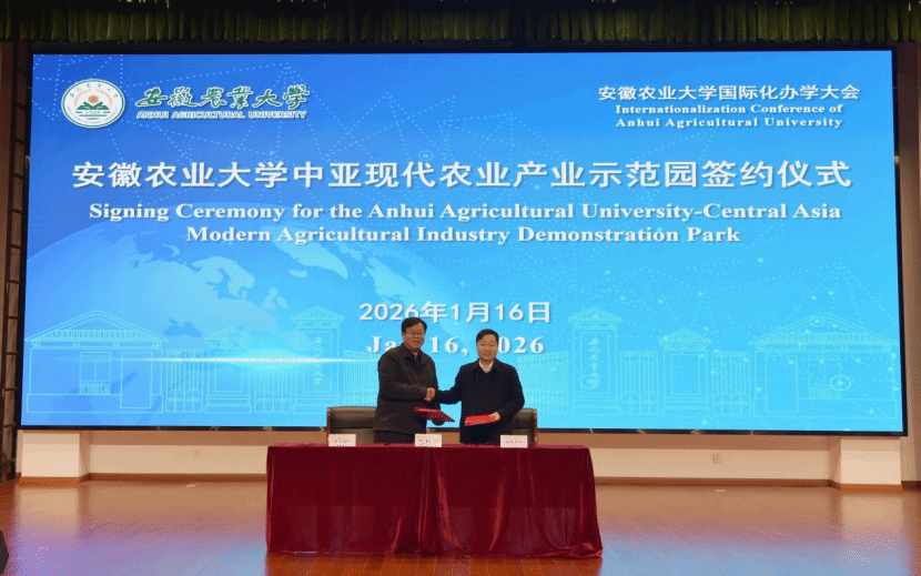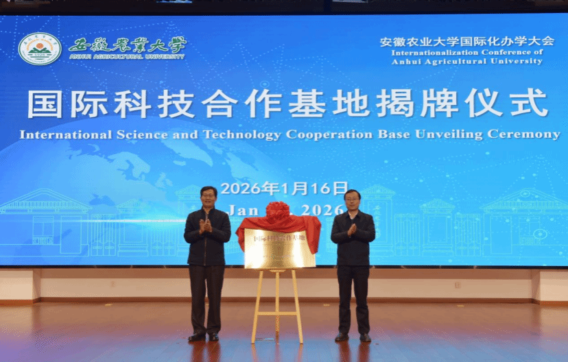 会上,校党委书记张庆亮与省科技厅副厅长谭海斌共同为学校“国际科技合作基地”揭牌。校党委副书记董雨与黄山一品有机茶业有限公司总经理助理程海霞共同为温波等五位“校国际化工作先进个人”颁奖。校党委常委、副校长陈黎卿作题为《“十四五”国际化办学总结与“十五五”展望》的专题报告。校党委常委、副校长江海洋与华岩控股集团董事长孙明康签署共建“安徽农业大学中亚现代农业产业示范园”合作协议。