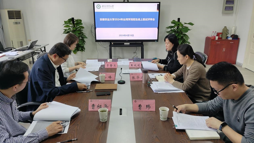 4月18日,我校召开2024年台湾学测招生线上面试评审会。港澳台事务办公室、教务处(招生办)、动物科技学院等单位负责人和招生工作负责人参会。评审会重点考察了报名学生的学业水平、综合素质等,并逐一对学生的面试情况进行综合评议。