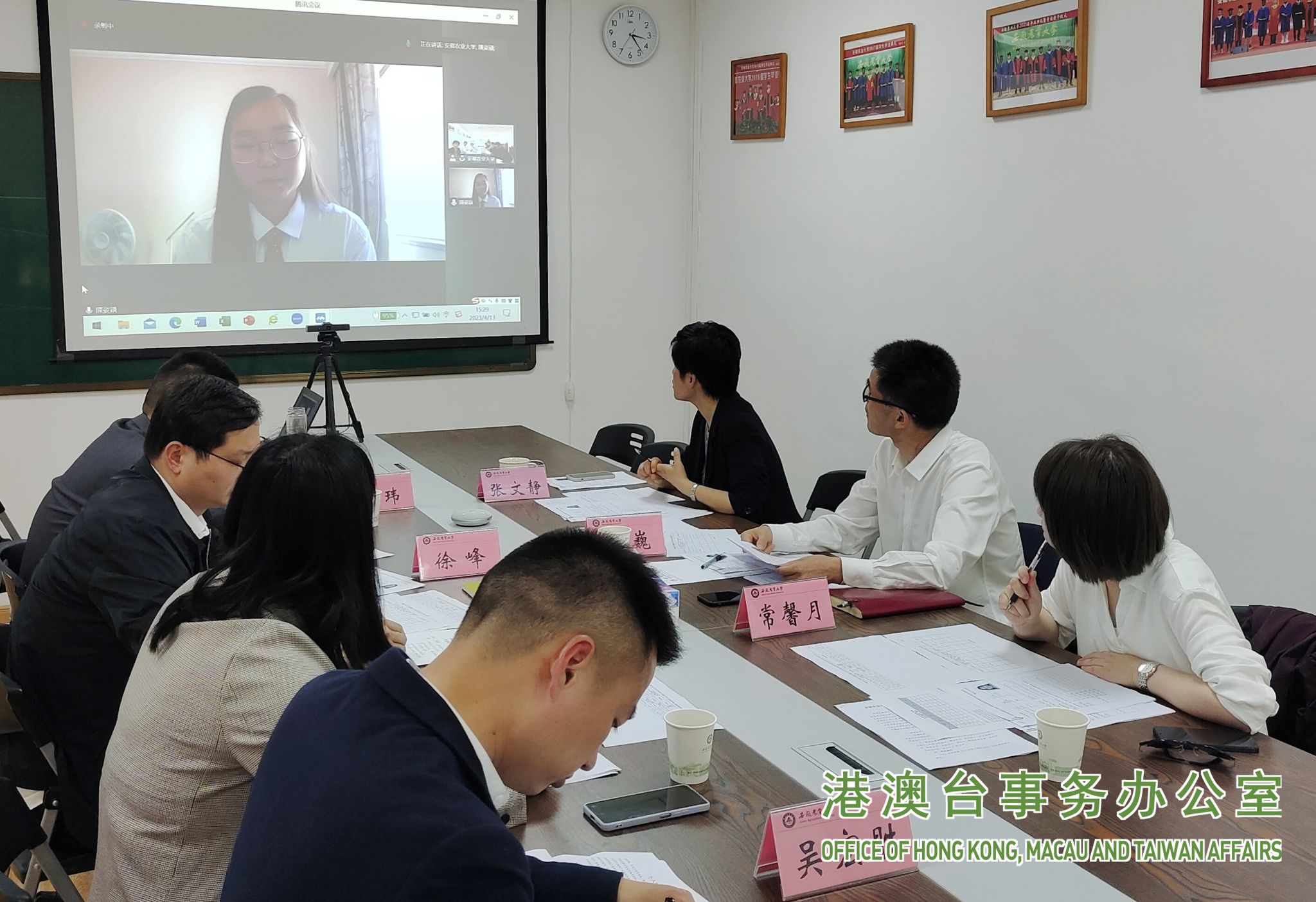 4月13日下午,我校召开2023年台湾学测招生线上面试评审会。港澳台事务办公室、教务处、招就处、理学院、动物科技学院等单位领导和招生工作负责人参会。会议由国际交流合作处副处长张文静主持。